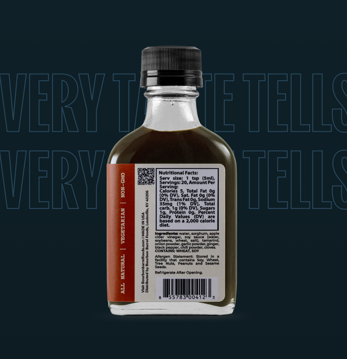 All-Natural, vegetarian, and barrel aged. Balance of bitter, sweet, and umami with flavor notes of vinegar, sorghum, spice, and hints of oak. This is a great condiment for that secret ingredient.