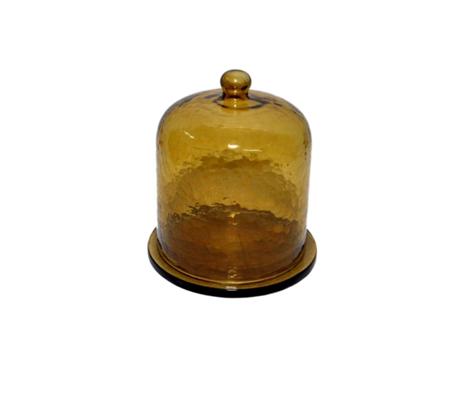 Cake Recycled Glass Dome w/Plate Dia 6” Olive