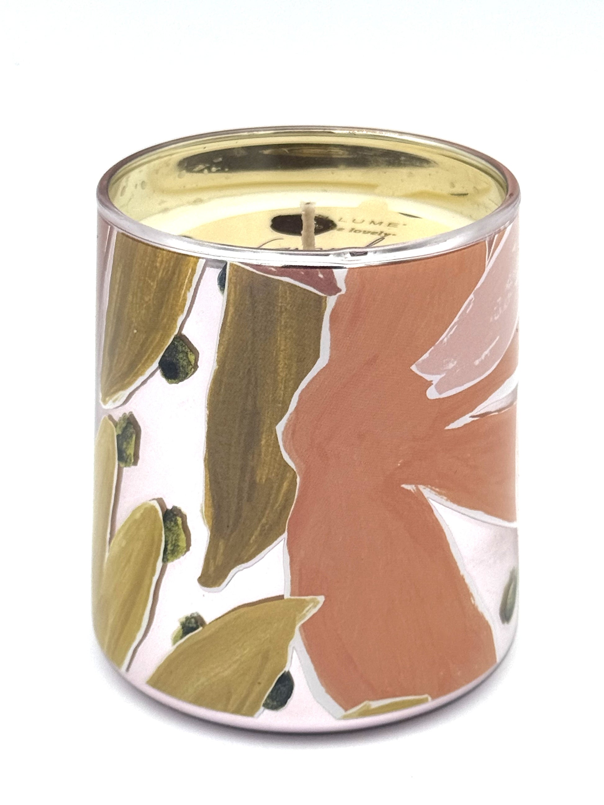 Fragrance Description: A charming je ne sais quoi of lavender, jasmine, and blonde woods. Burn Time: 52 Hours. 7.8 oz. Glass Candle. Go Be Lovely Collection.