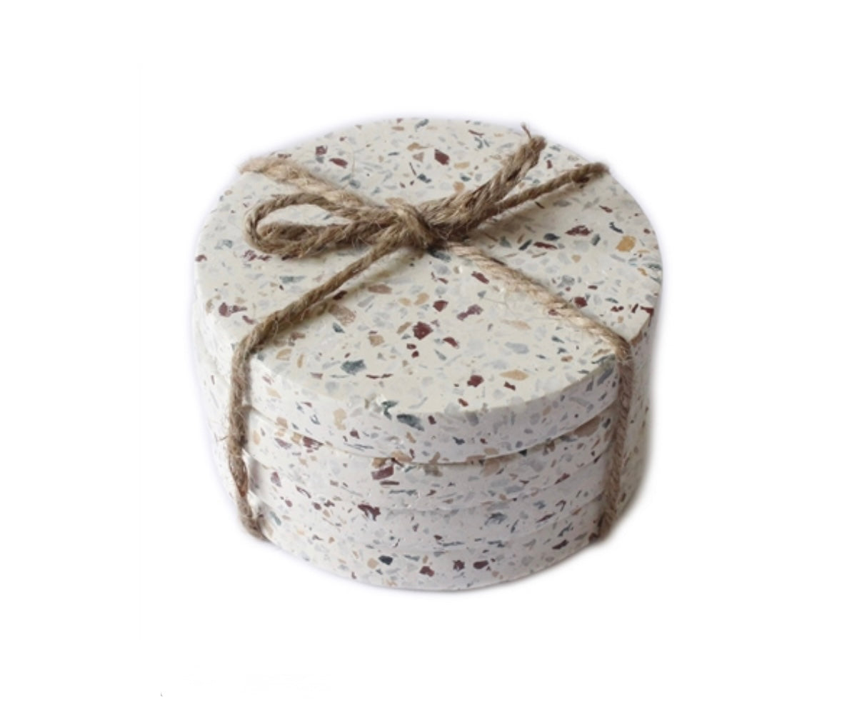 Set of 4 Terrazzo Round Coasters w/ Twine