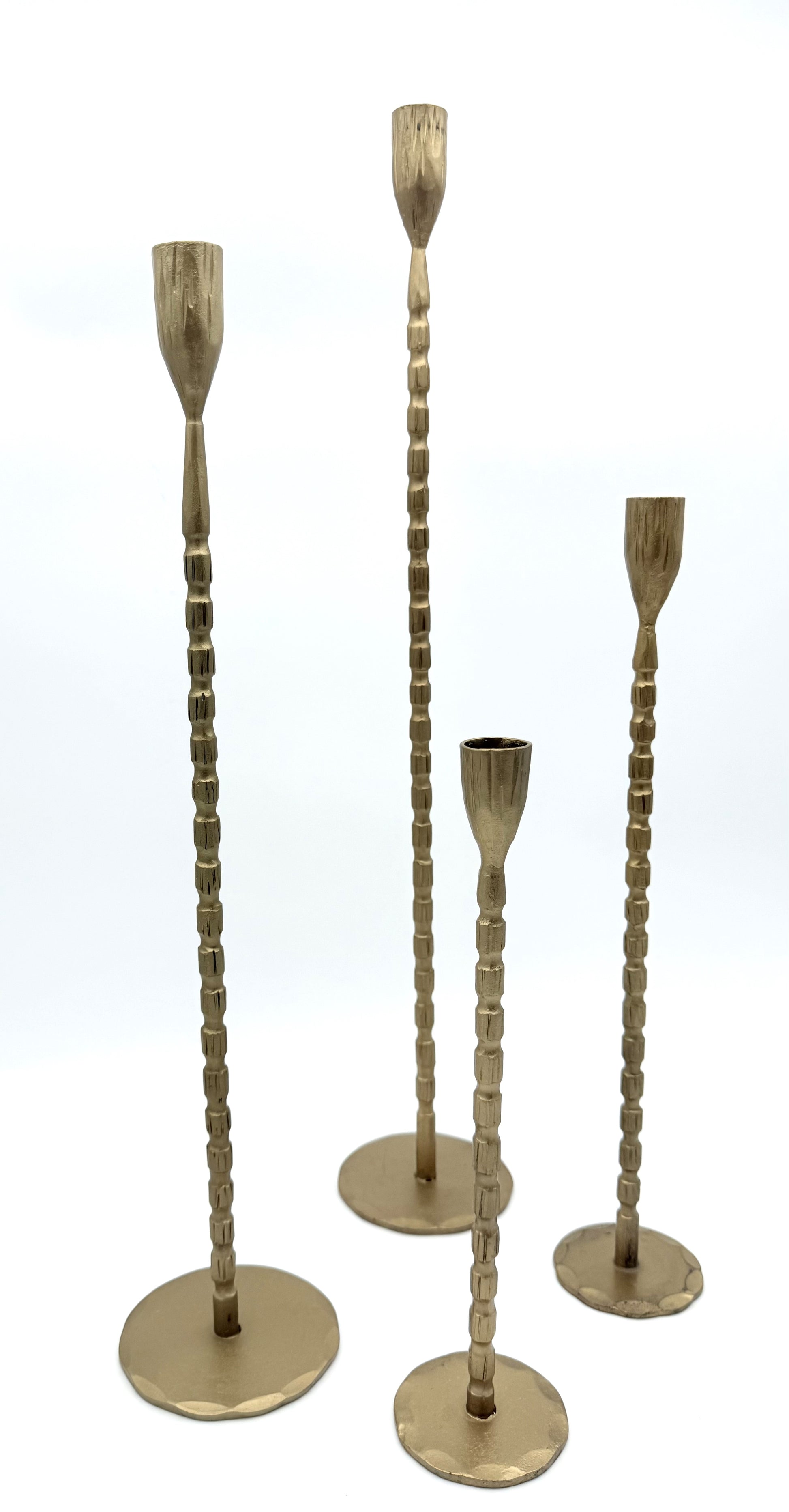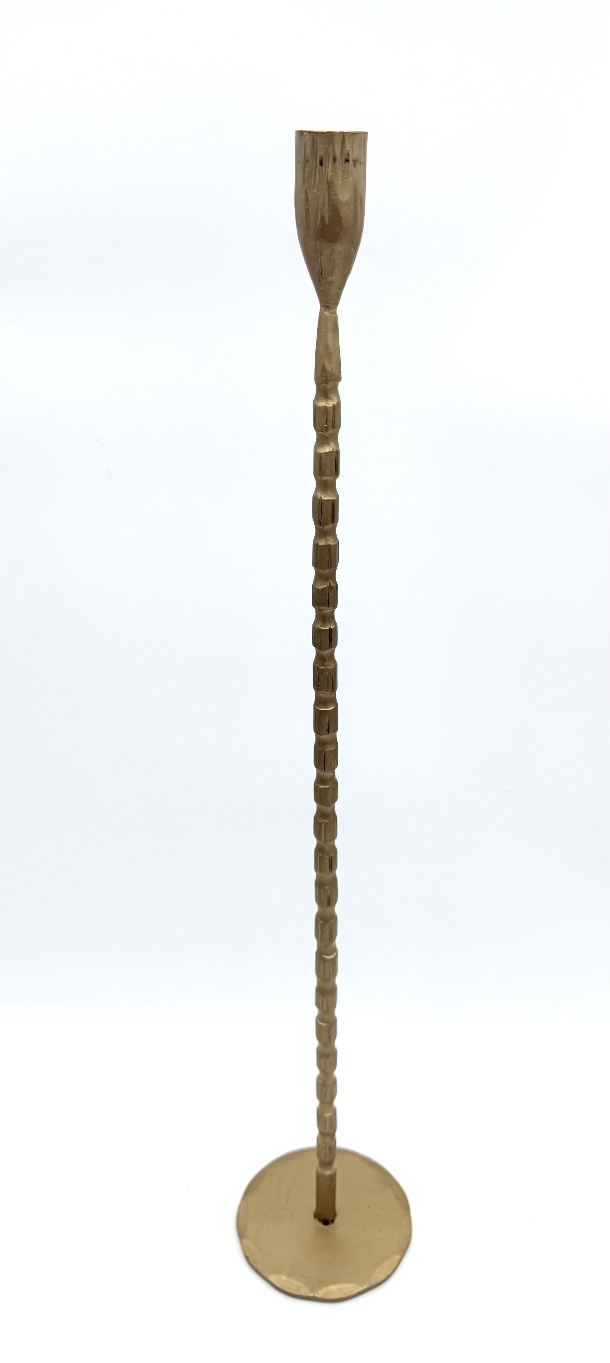 Single 23 1/2"H Brass Finish Hand Forged Cast Iron Taper Holder