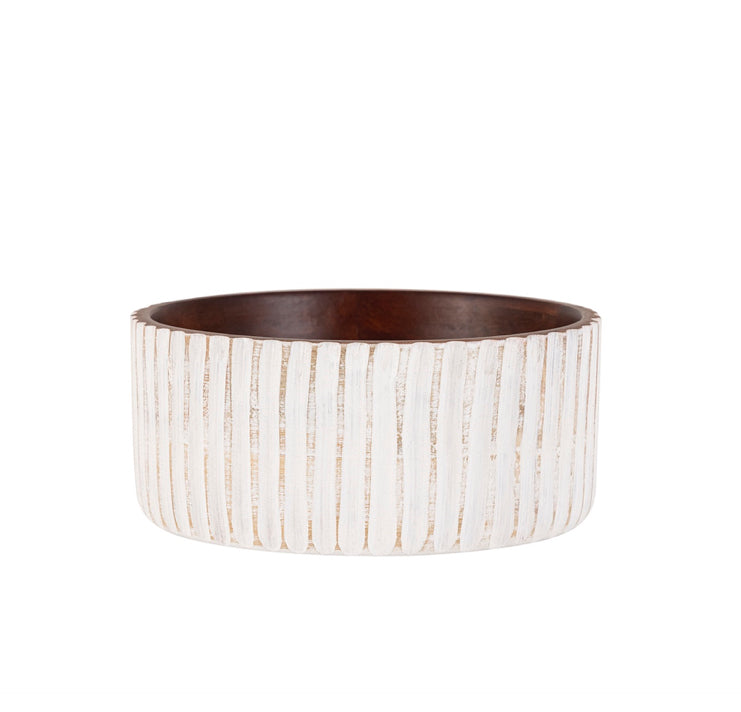 White & Walnut Medium Round Wooden Bowl Dia 7.8”